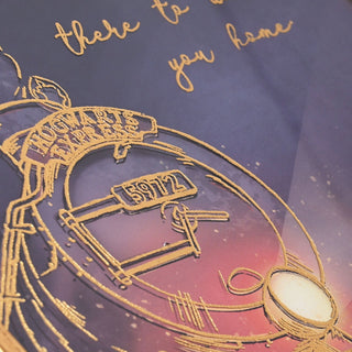 Aux côtés du logo de cette école de sorciers, on retrouve également les logos des quatre maisons (Gryffondor, Poufsouffle, Serdaigle et Serpentard), utilisés comme emblèmes sur divers articles destinés au quotidien ou simplement à la décoration intérieure.